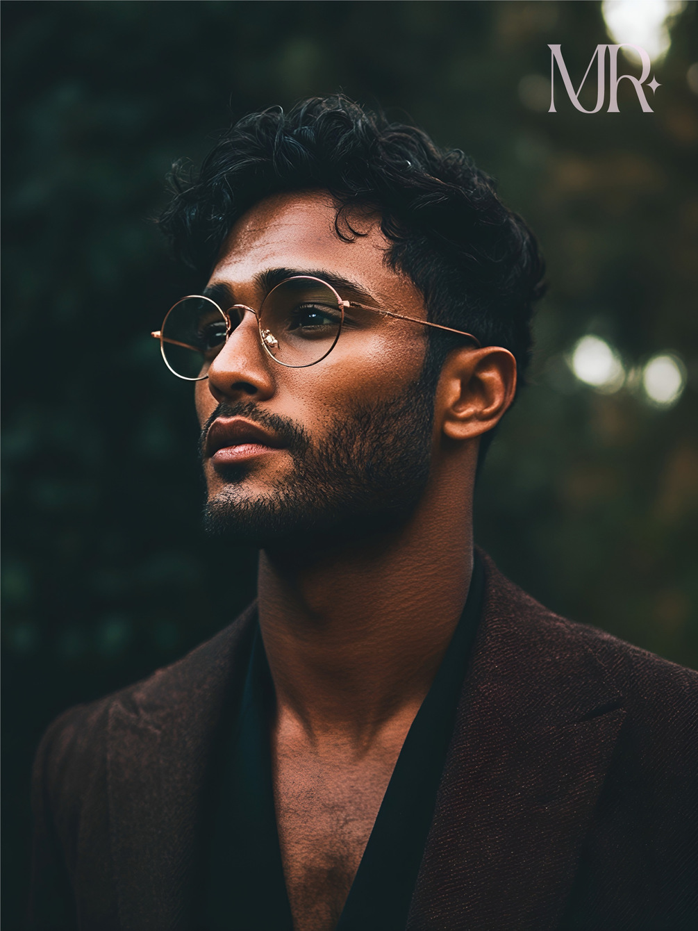 Sharp sunglasses, sharper gaze—classic cool with a moody edge.